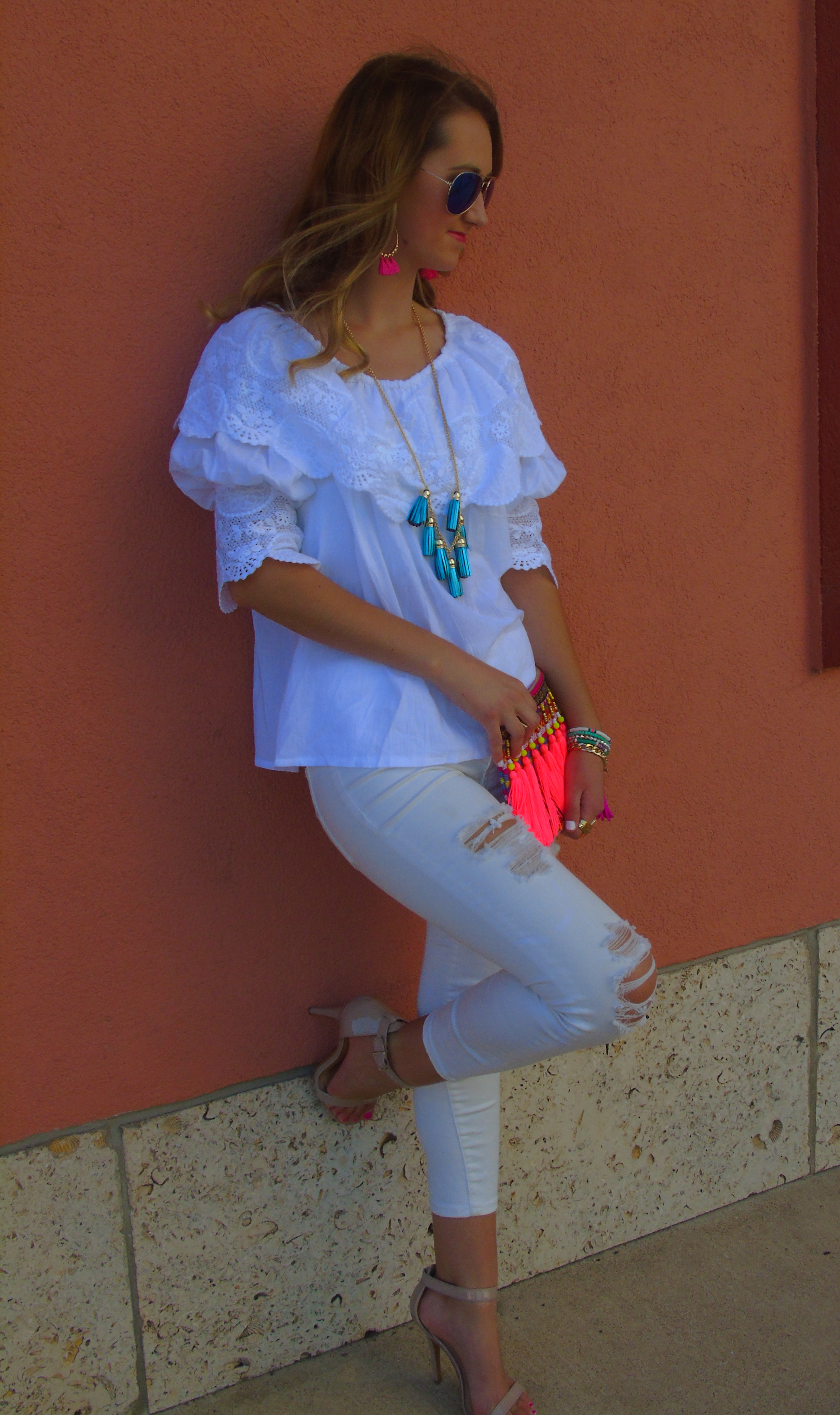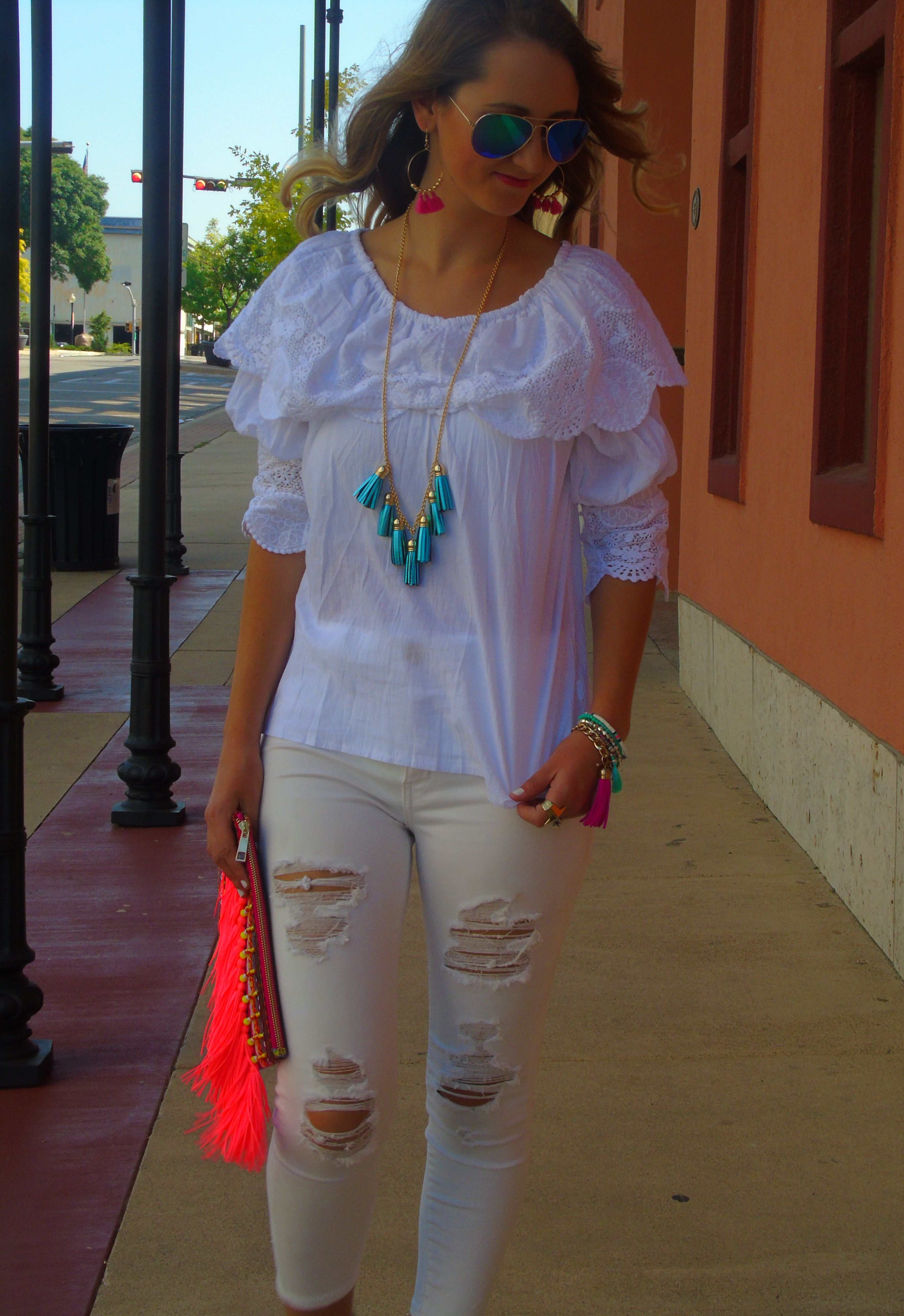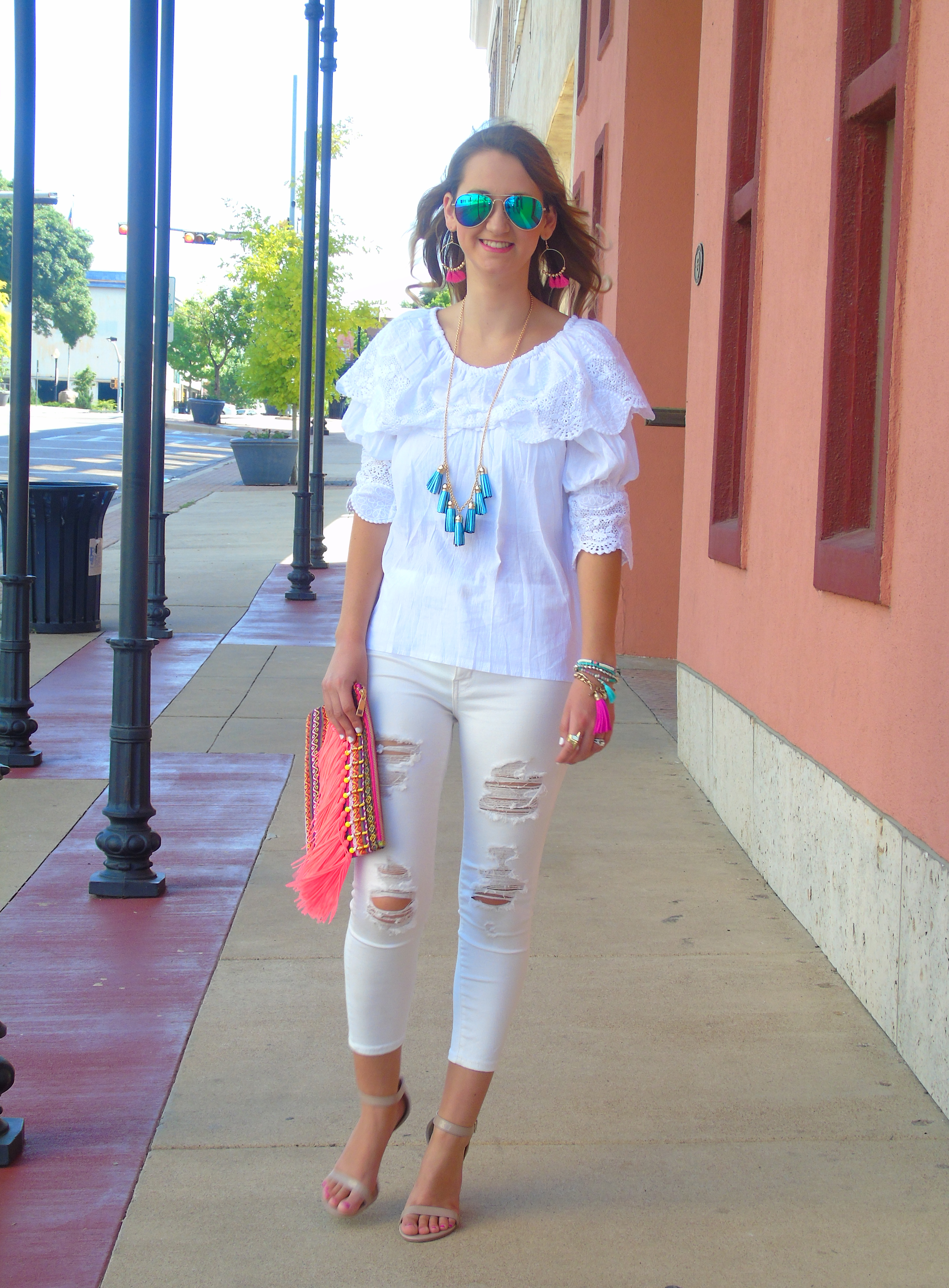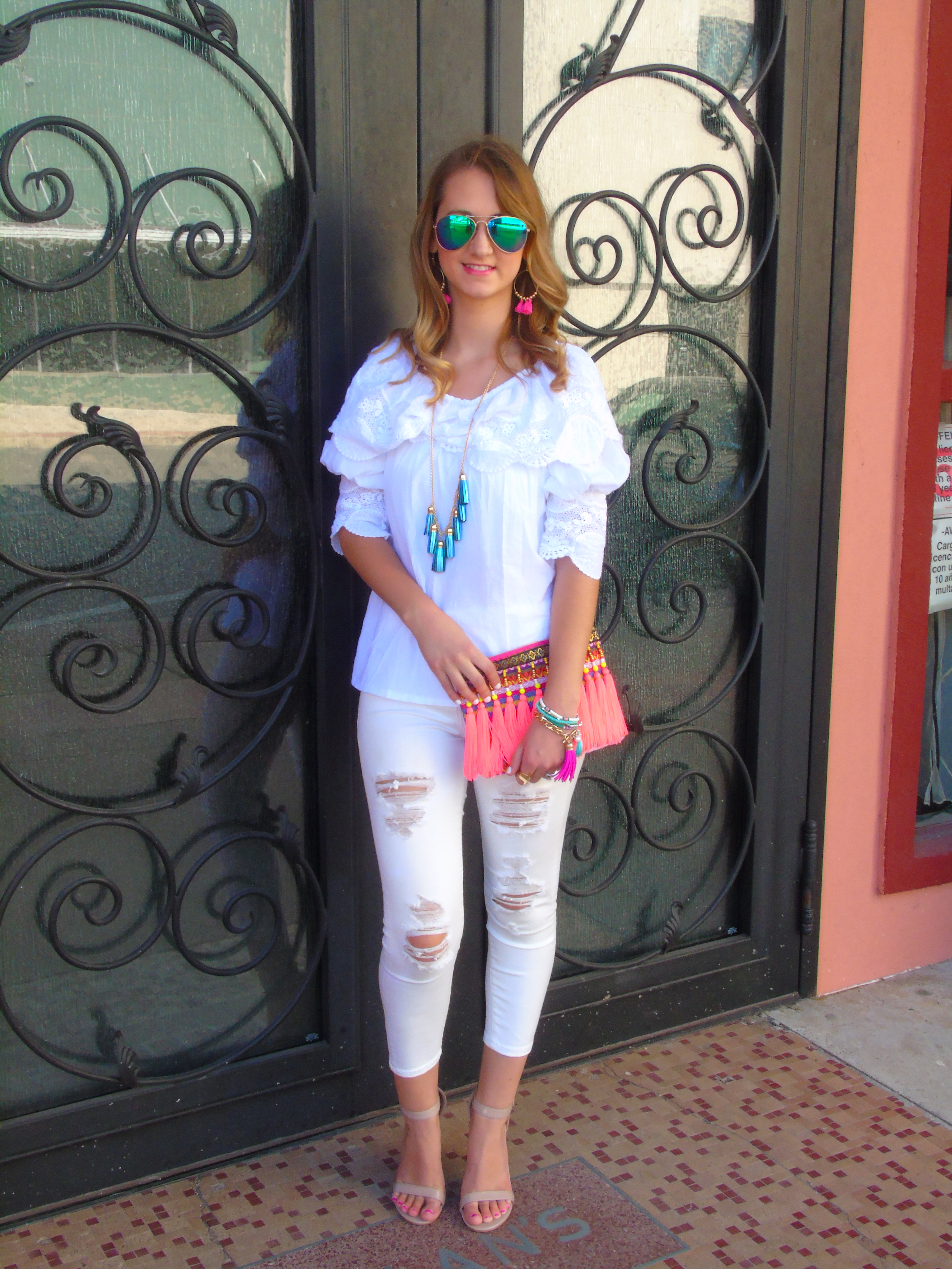 Love how you made a white on white outfit so colorful!!!… and I’m loving all the tassels!